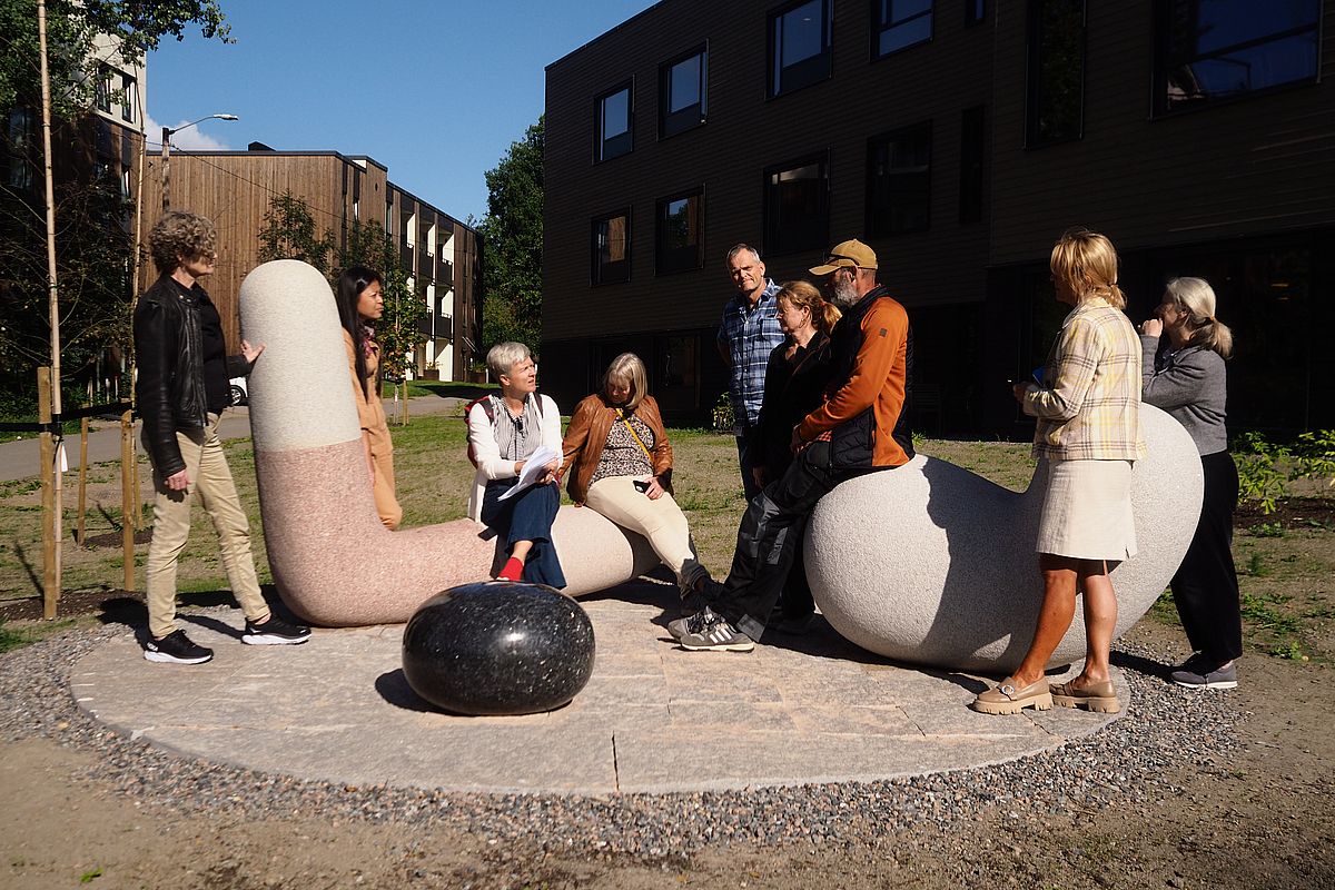 Alle inviterer de oss til å sitte ned, lene oss inntil eller la hånden stryke over de ulike overflatene.